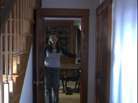Kymra preparing for her big line: "Hello, Jonathan!"